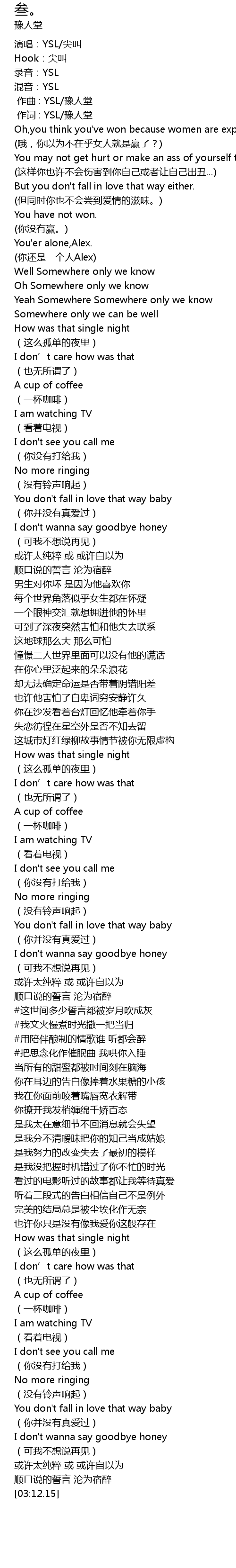 | [00:00.357] | 作词 : YSL/豫人堂 |