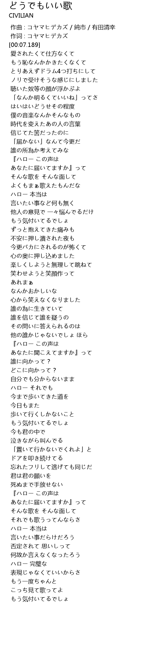 | [01:12.455] | よくもまぁ歌えたもんだな |
