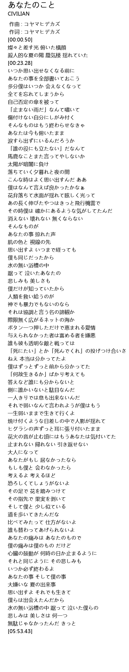 | [03:21.77] | ヒグラシの声ずっと耳に張り付いたまま |