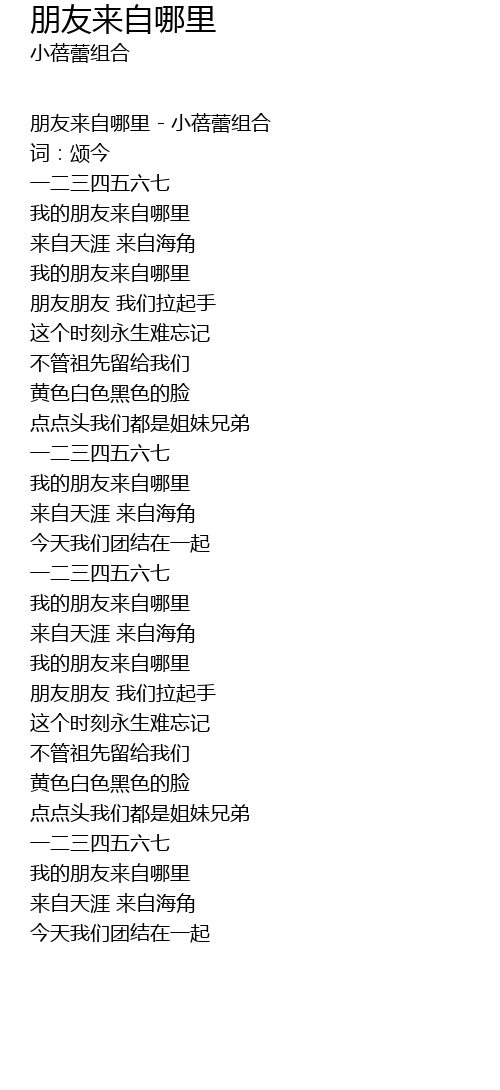 | 朋友来自哪里 - 小蓓蕾组合 | |