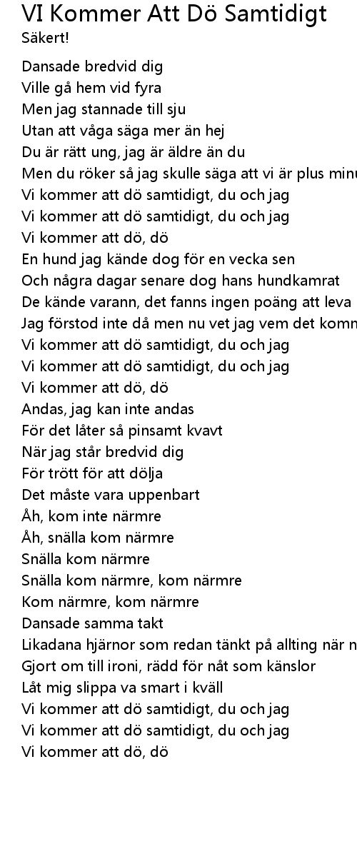 | Vi kommer att d samtidigt, du och jag | |
