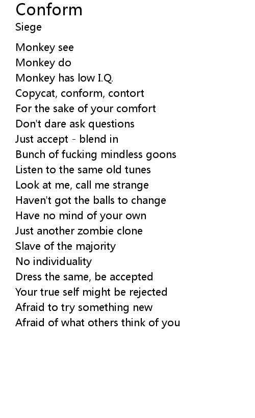 | Copycat, conform, contort | |