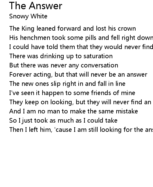 Then I left him, 'cause I am still looking for the answer |