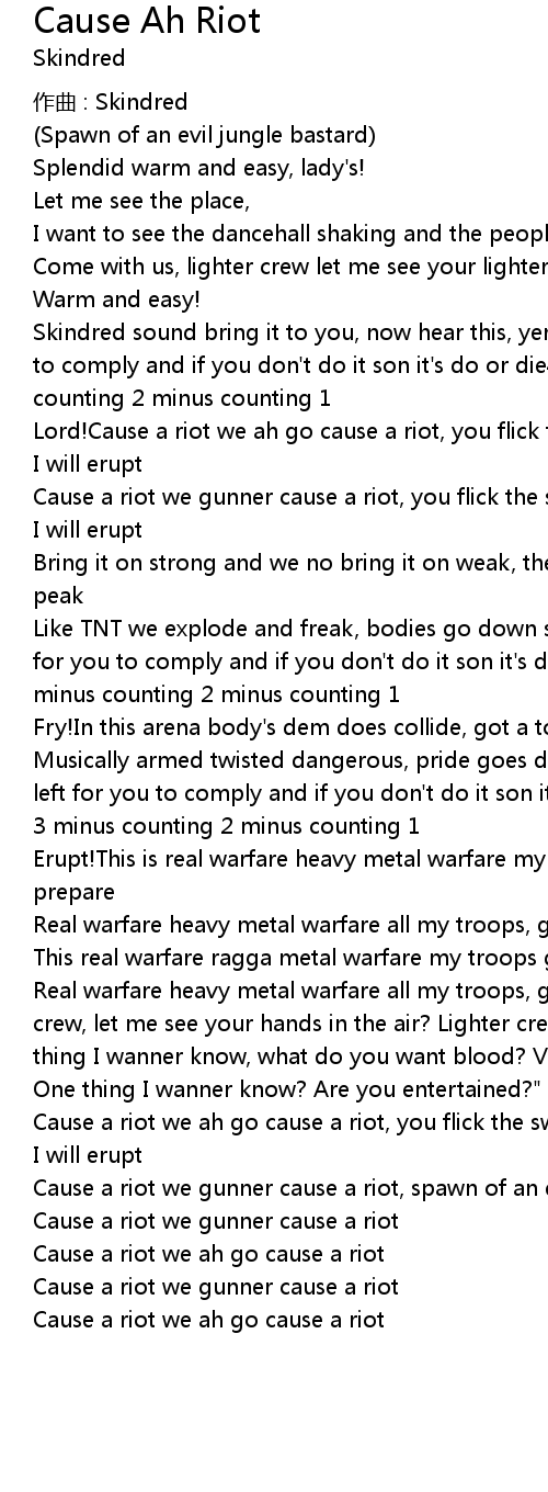 | Cause a riot we gunner cause a riot, spawn of an evil jungle bastard, | |