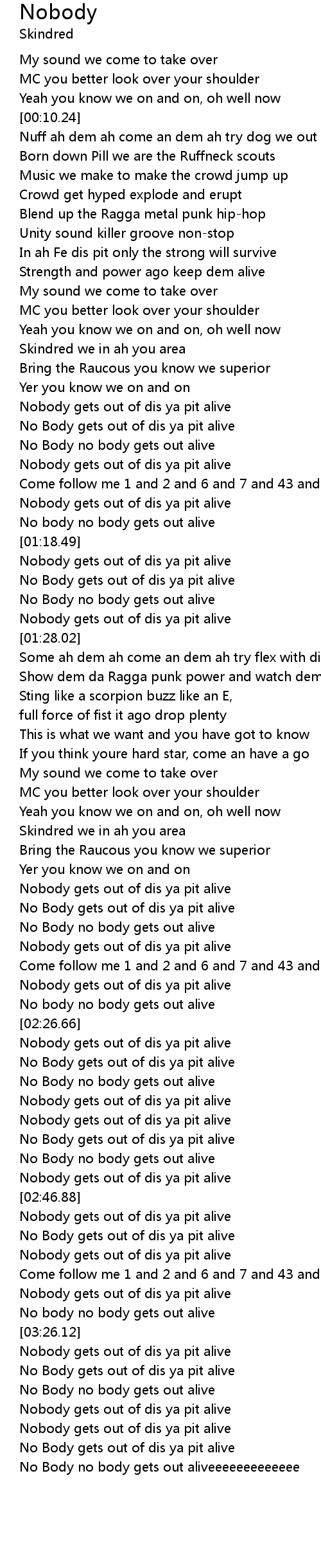 | [01:01.73] | No Body gets out of dis ya pit alive |