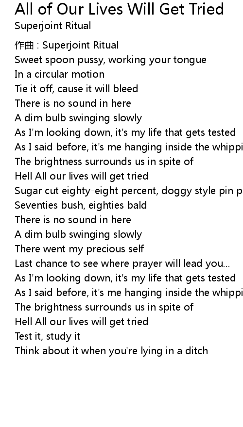 | Song | All of Our Lives Will Get Tried |