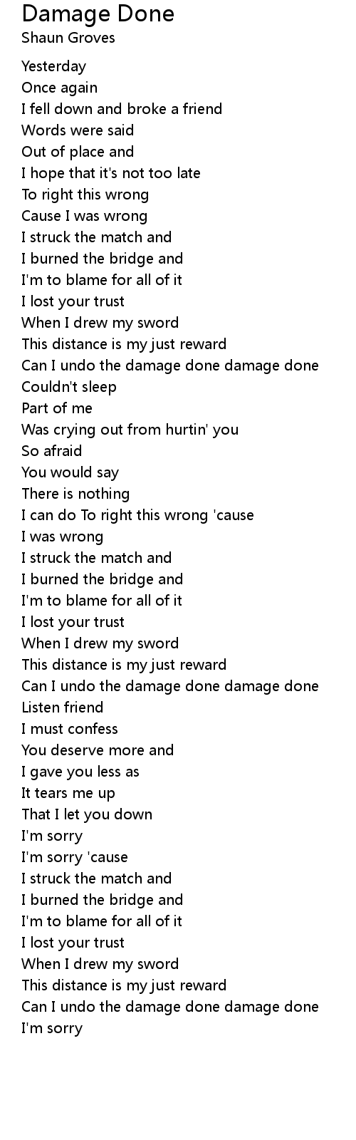 Can I undo the damage done damage done |