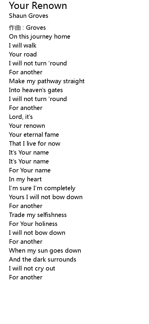 | Song | Your Renown |