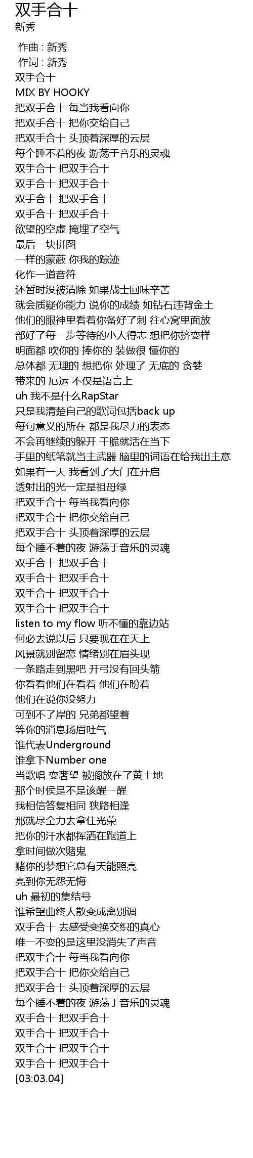 | [02:51.72] | shuāng shǒu hé shí bǎ shuāng shǒu hé shí |
