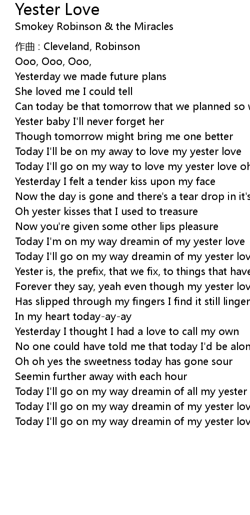 | Today I'll go on my way dreamin of my yester love, oh | |
