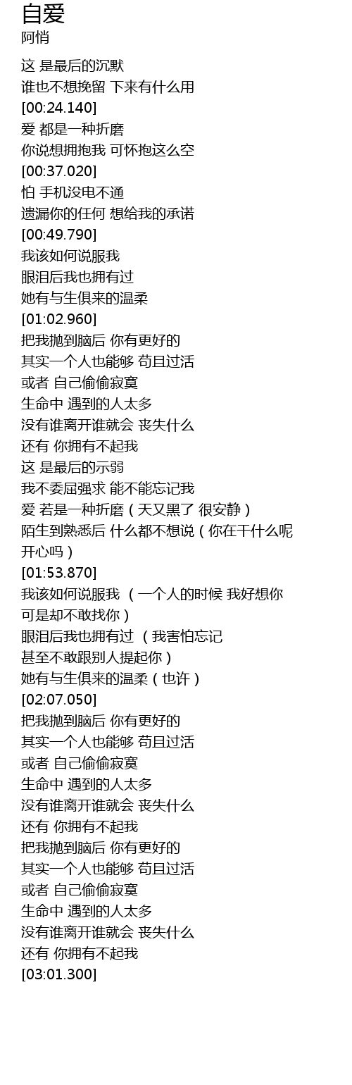 | [01:55.720] | 我该如何说服我 (一个人的时候 我好想你 可是却不敢找你) |