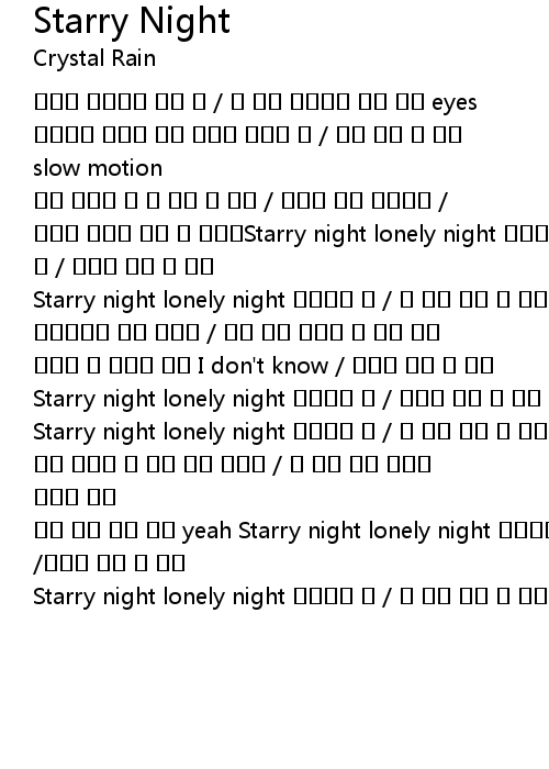 Starry night lonely night 떠나버린 너 / 내 몸이 멎는 것 같아ꠗ |