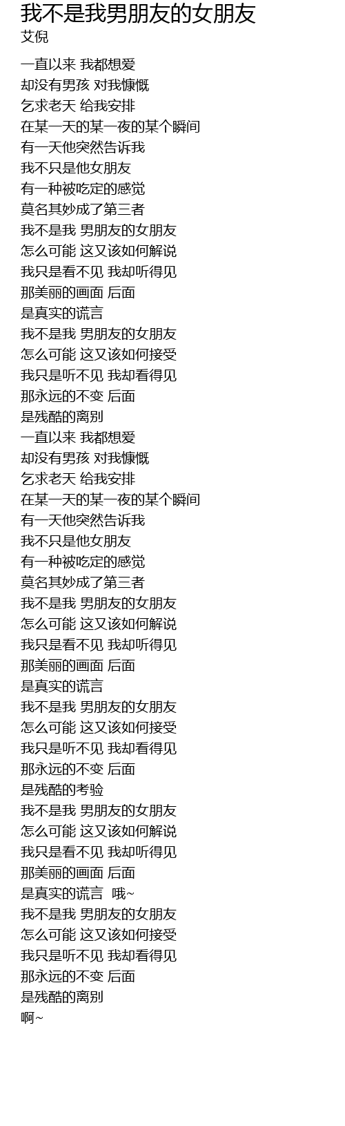 | [00:58.190] | 我不是我 男朋友的女朋友 |