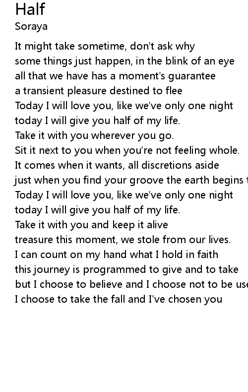 today I will give you half of my life. |