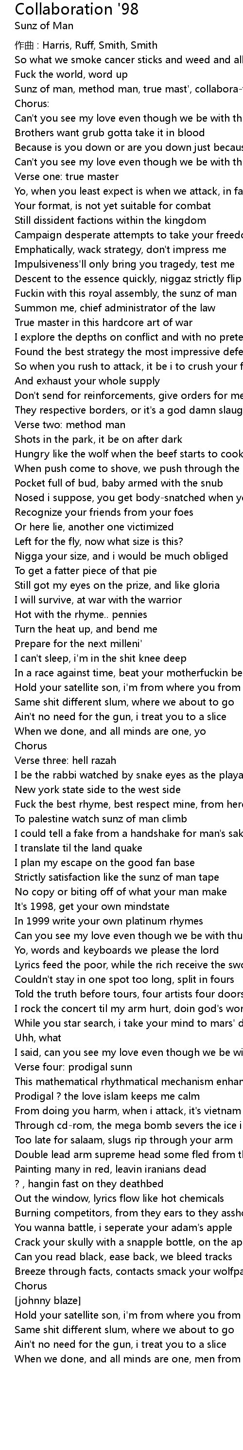 | Sunz of man, method man, true mast', collabora-tion | |