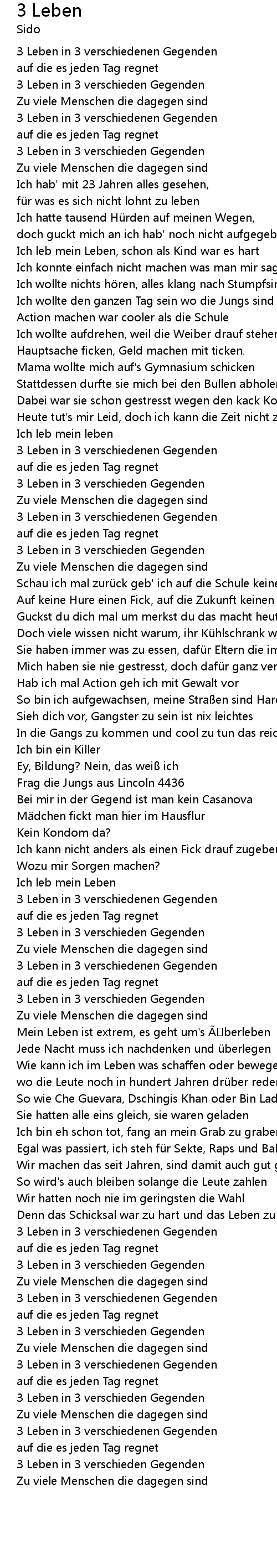 | Ich leb mein Leben, schon als Kind war es hart | |