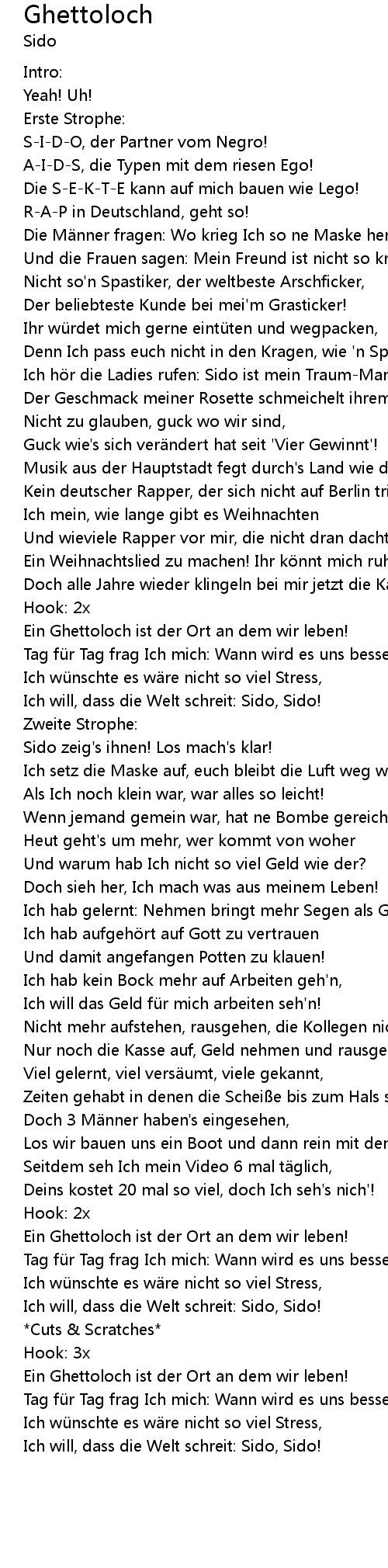 | Ich will, dass die Welt schreit: Sido, Sido! |