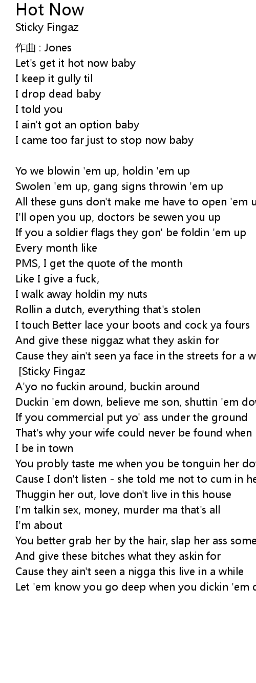 | Let' s get it hot now baby | |