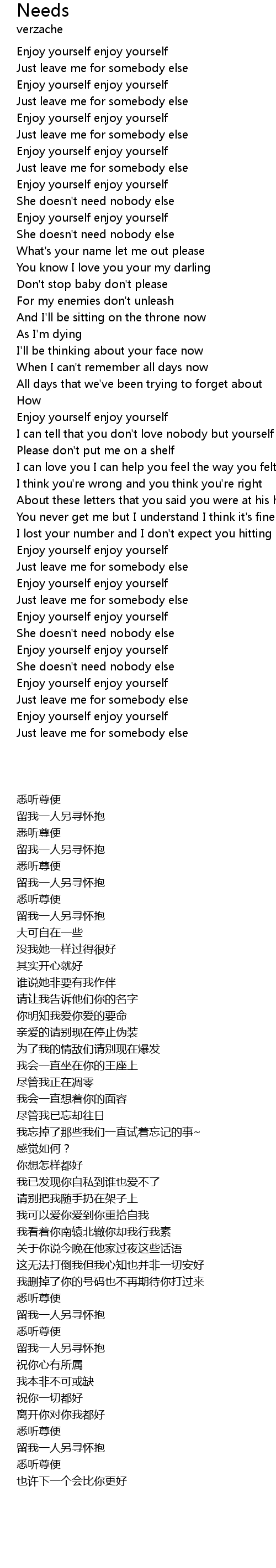 | [00:53.490] | She doesn't need nobody else |