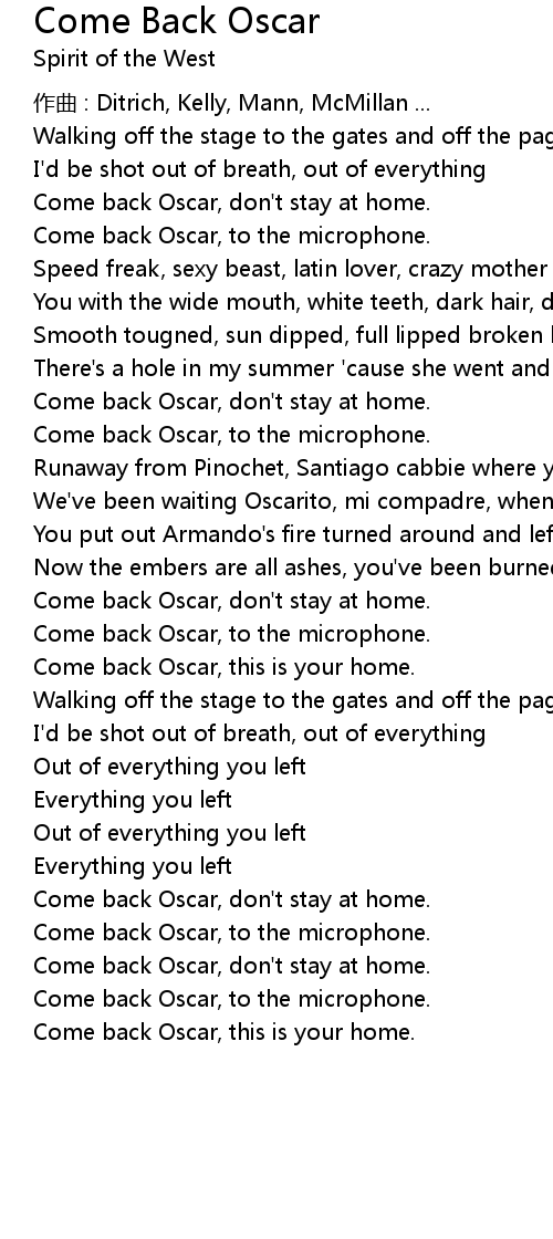 | We' ve been waiting Oscarito, mi compadre, when you snapping back. | |