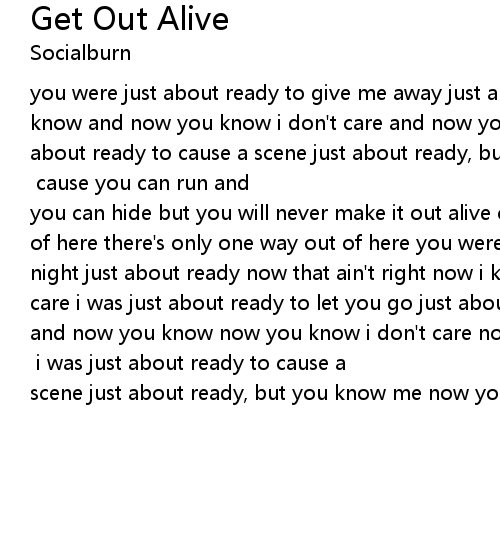 you were just about ready to give me away just about ready to sell me out now i know and now you know i don't care and now you know i don't care i was just about ready to cause a scene just about ready, but you know me now you know, now you know i don't care now you know, i don't care [chorus] cause you can run and you can hide but you will never make it out alive cause there's only one way out of here there's only one way out of here you were just about ready to call it a night just about ready now that ain't right now i know and now you know i don't care i was just about ready to let you go just about ready to steal this show and now you know now you know i don't care now you know i don't care [chorus 2x] there's only one way out of here [repeat] i was just about ready to cause a scene just about ready, but you know me now you know, now you know i don't care