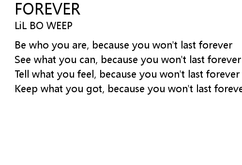| [00:24.750] | Tell what you feel, because you won't last forever |
