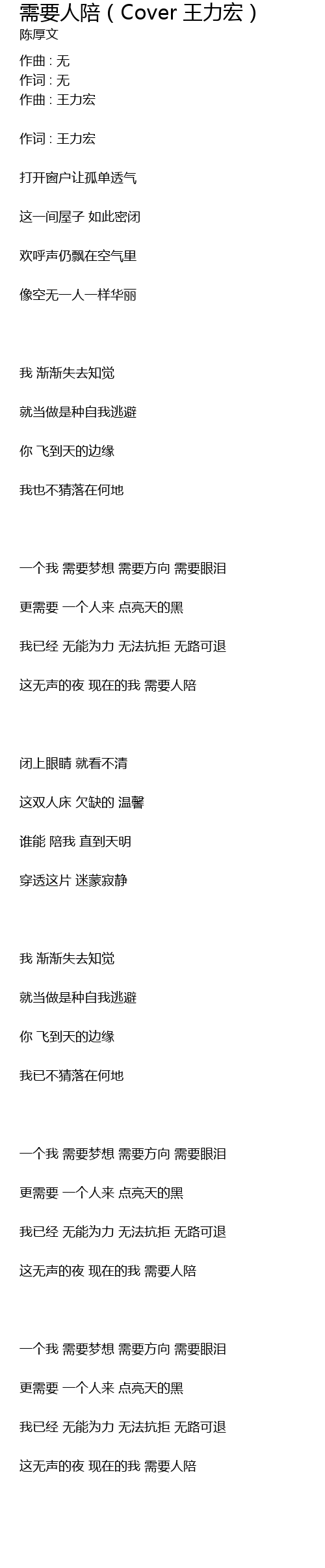 | zhè wú shēng de yè xiàn zài de wǒ xū yào rén péi | |
