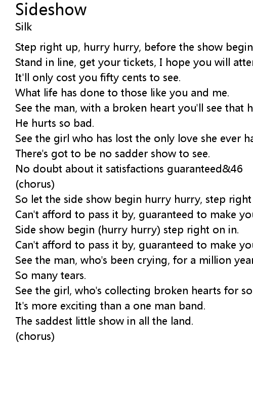 Side show begin (hurry hurry) step right on in. |