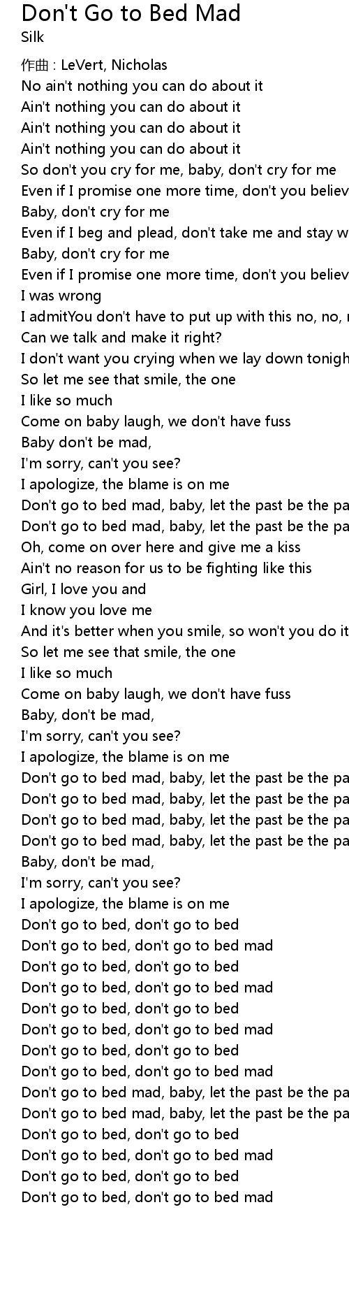 | Don' t go to bed, don' t go to bed mad | |