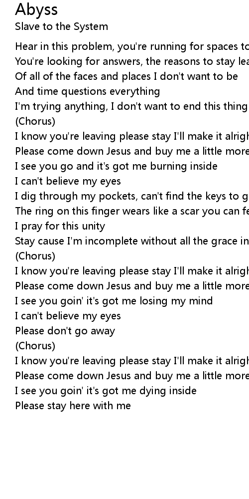 Stay cause I'm incomplete without all the grace inside you bring |