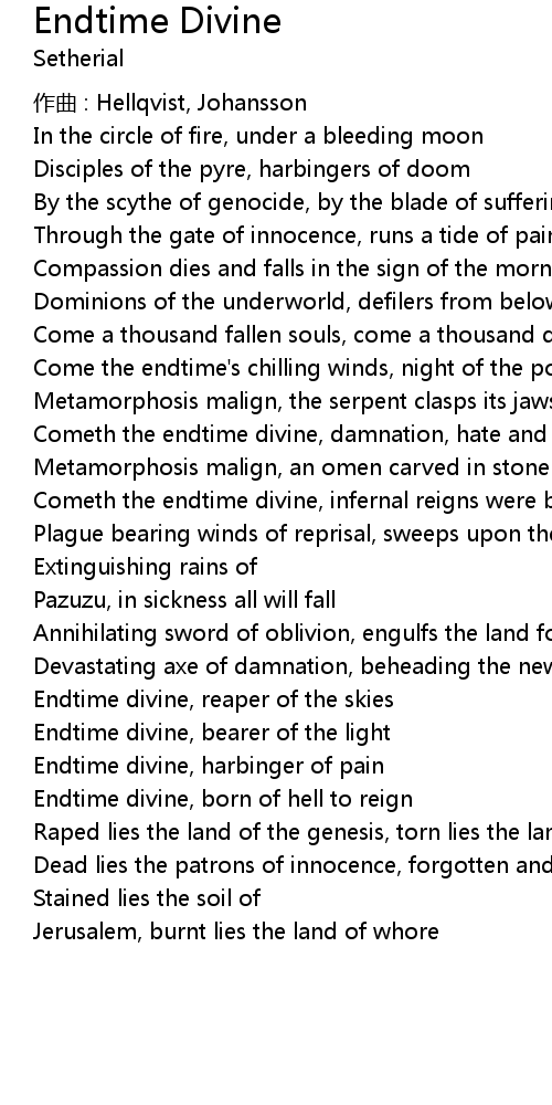 | Endtime divine, born of hell to reign | |