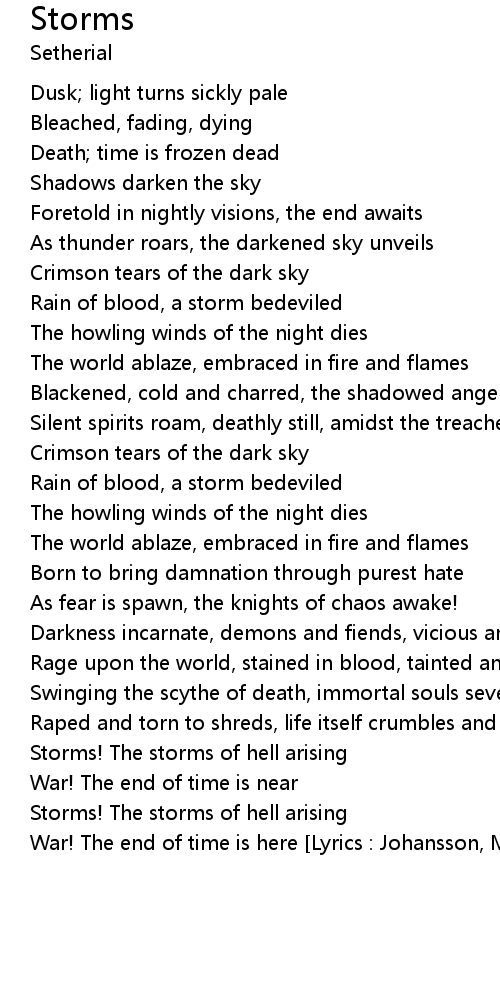 Storms! The storms of hell arising |