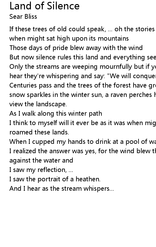 Only the streams are weeping mournfully but if you listen their cries you can hear they're whispering and say: "We will conquer what once was ours" |