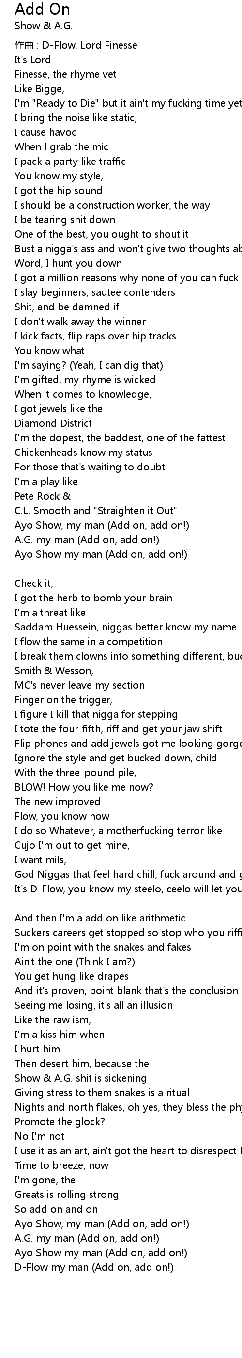 | Ayo Show, my man Add on, add on! | |