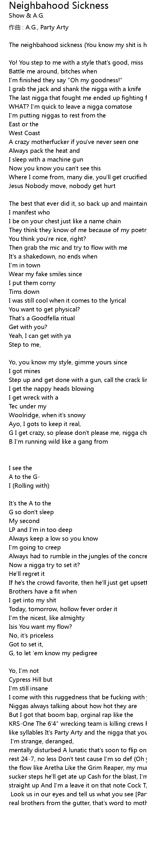 | The neighbahood sickness You know my shit is hot | |