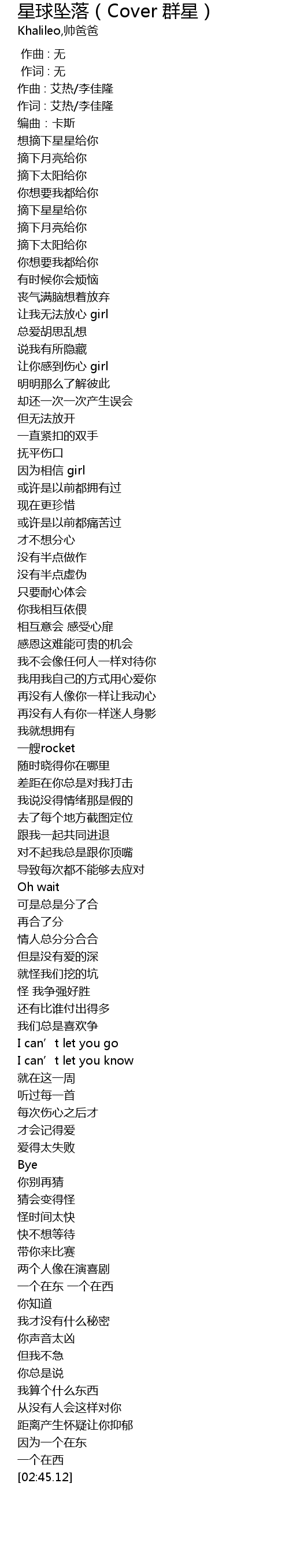 | [00:27.05] | zhāi xià yuè liàng gěi nǐ |