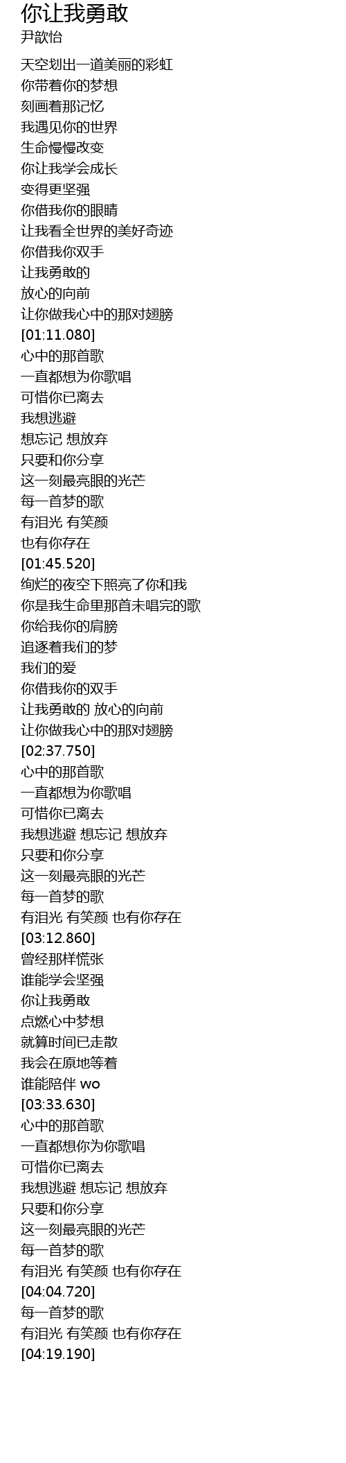 | [03:17.770] | nǐ ràng wǒ yǒng gǎn |