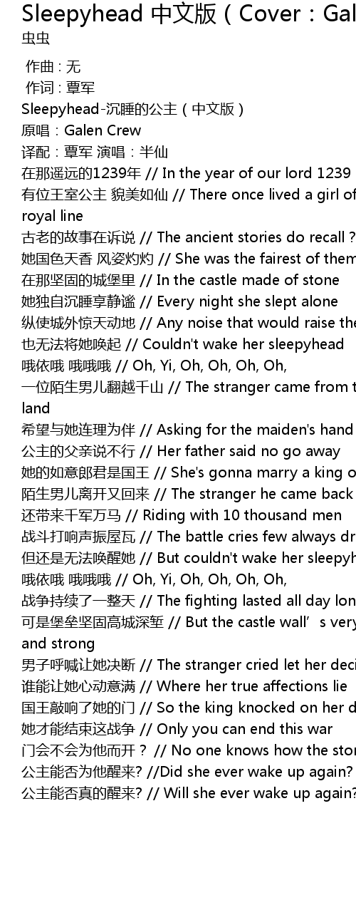| [00:02.00] | Sleepyhead chen shui de gong zhu zhong wen ban |