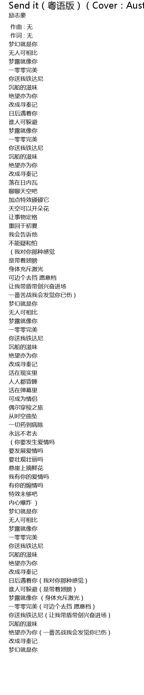 | Song | Send it(粤语版)(Cover:Austin Mahone) |