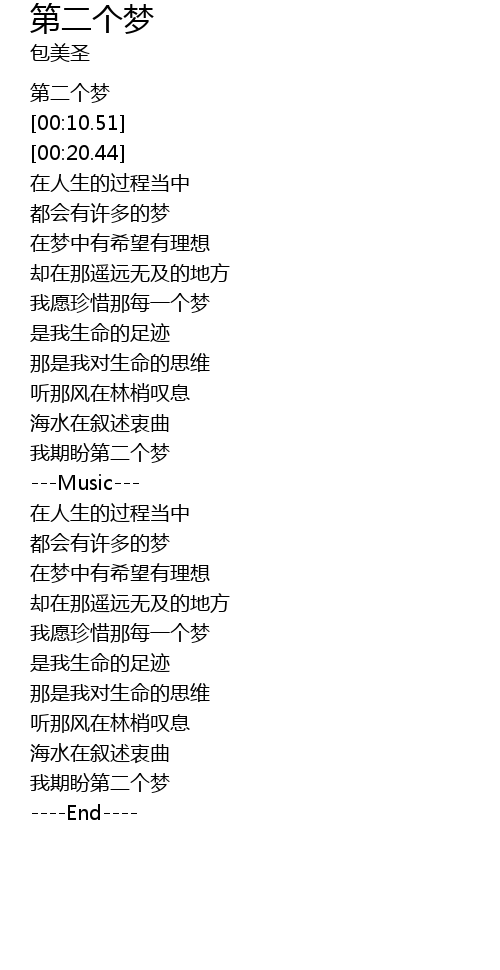 | [03:01.99] | wǒ qī pàn dì èr gè mèng |