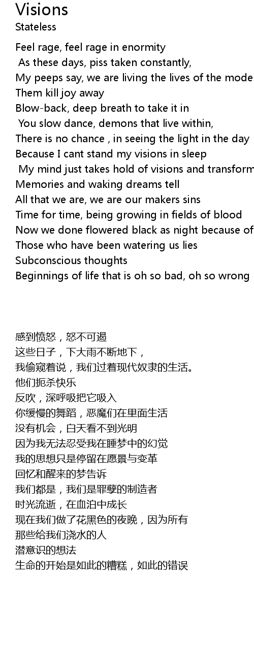 | [01:21.000] | Because I cant stand my visions in sleep |