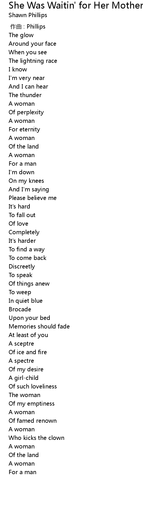 | Song | She Was Waitin' for Her Mother at the Station in Torino and You Know I |