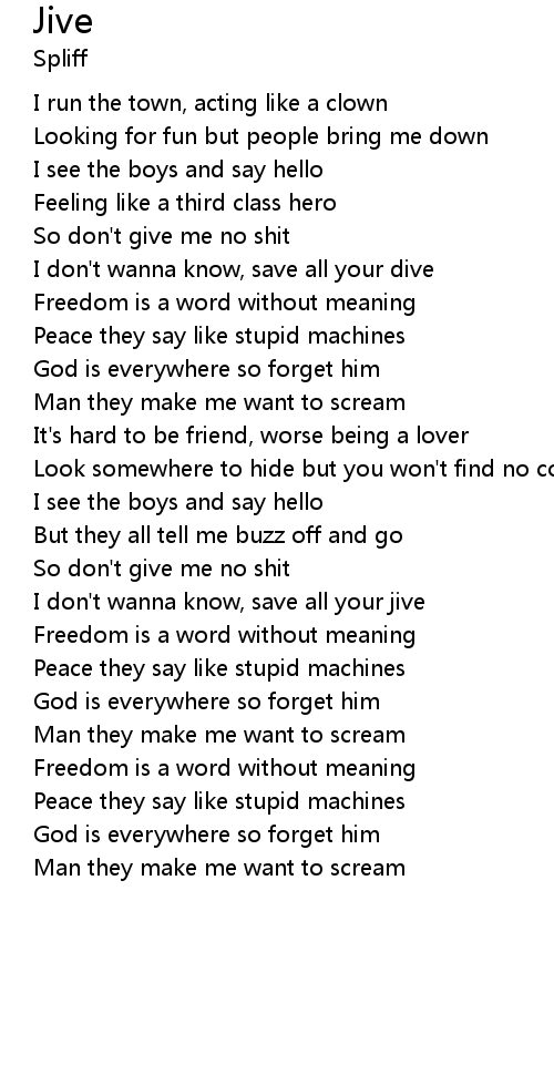 I don't wanna know, save all your jive |