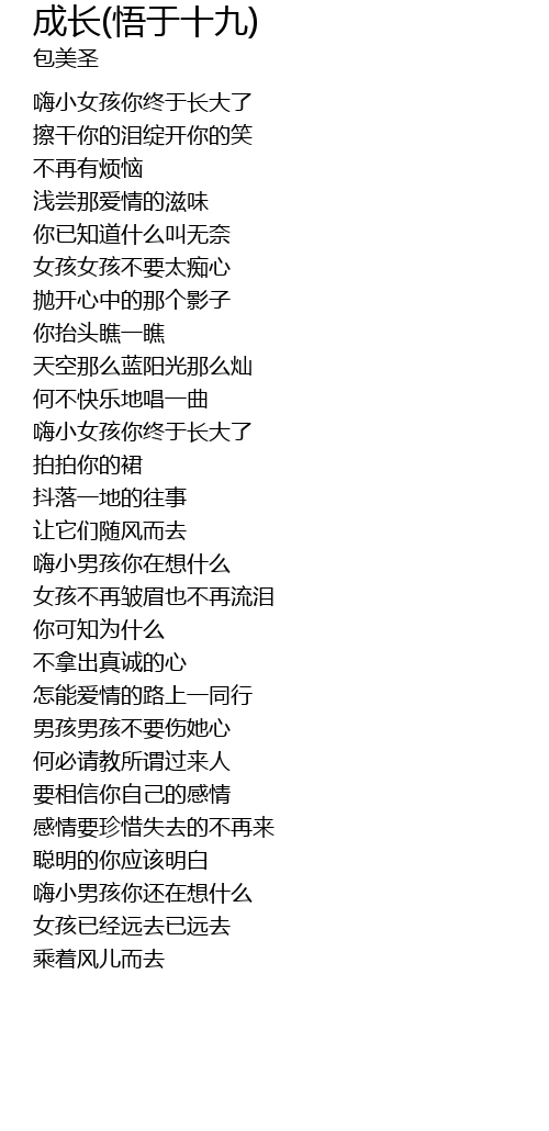 | [00:17.41] | hai xiao nv hai ni zhong yu zhang da le |