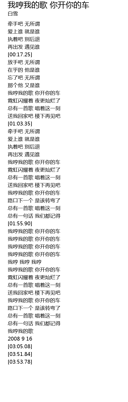 | [01:39.49] | 我哼我的歌 你开你的车 |
