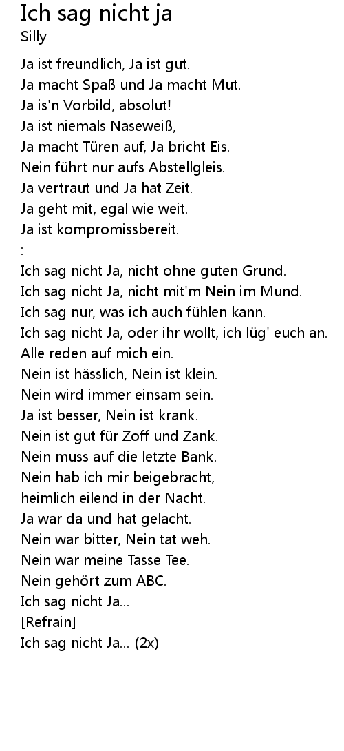 | Ich sag nicht Ja... (2x) |