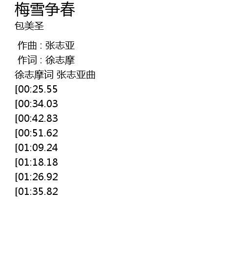 | [02:57.92][01:26.92] | 白的还是那冷翩翩的飞雪 |