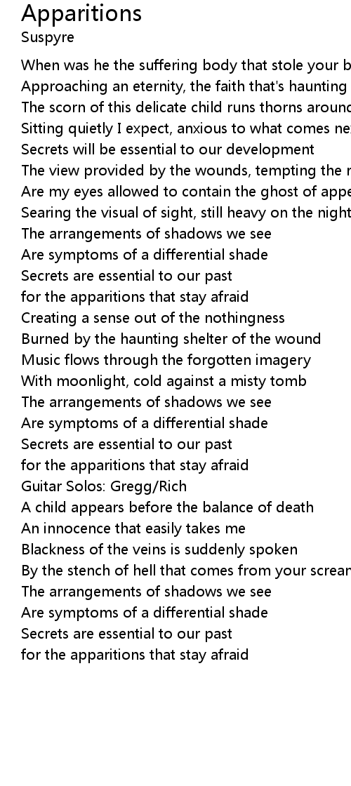 Apparitions Lyrics