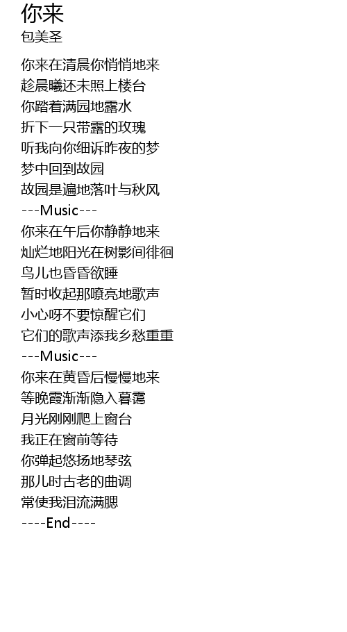 | [00:09.76] | 你来在清晨你悄悄地来 |