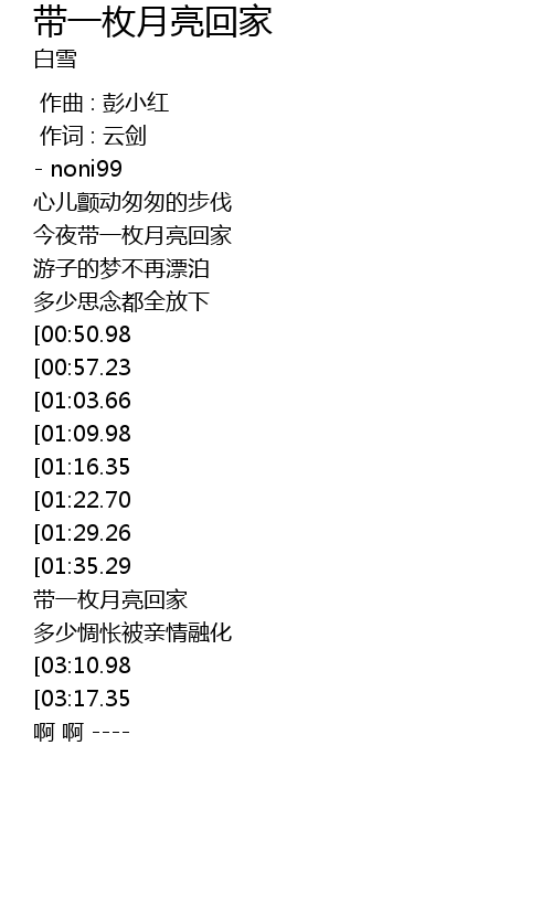 | [02:32.88][01:16.35] | 带一枚月亮回家 |